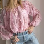 Camicetta con stampa naj – oleari vestibilità fino a 44/46 molto bella da portare sia rimborsata nel pantalone che fuori. 85% tencel 15% poliestere