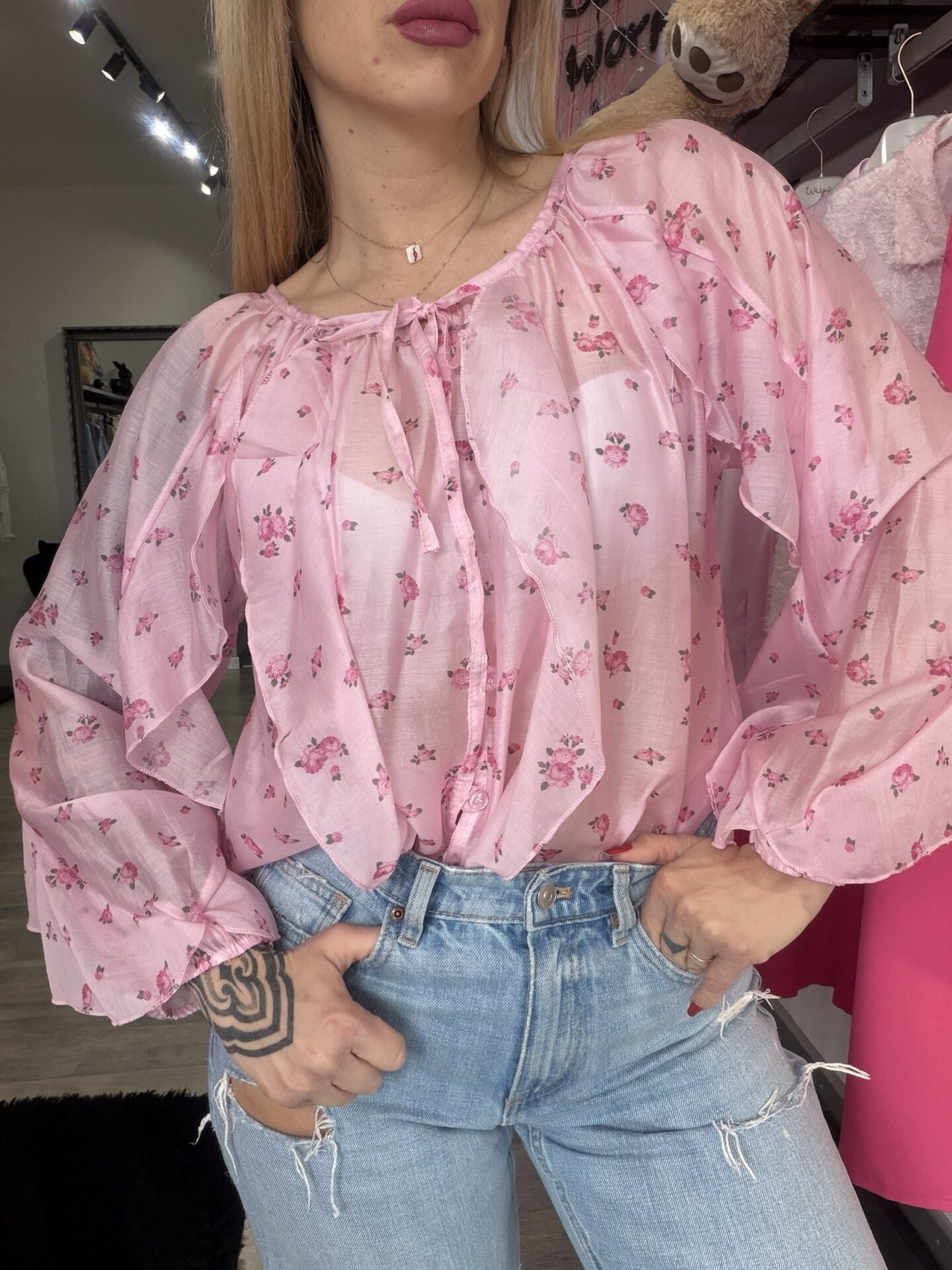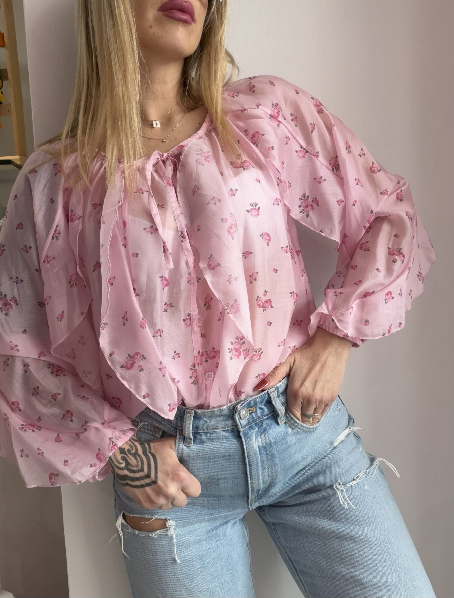 Camicetta con stampa naj – oleari vestibilità fino a 44/46 molto bella da portare sia rimborsata nel pantalone che fuori. 85% tencel 15% poliestere