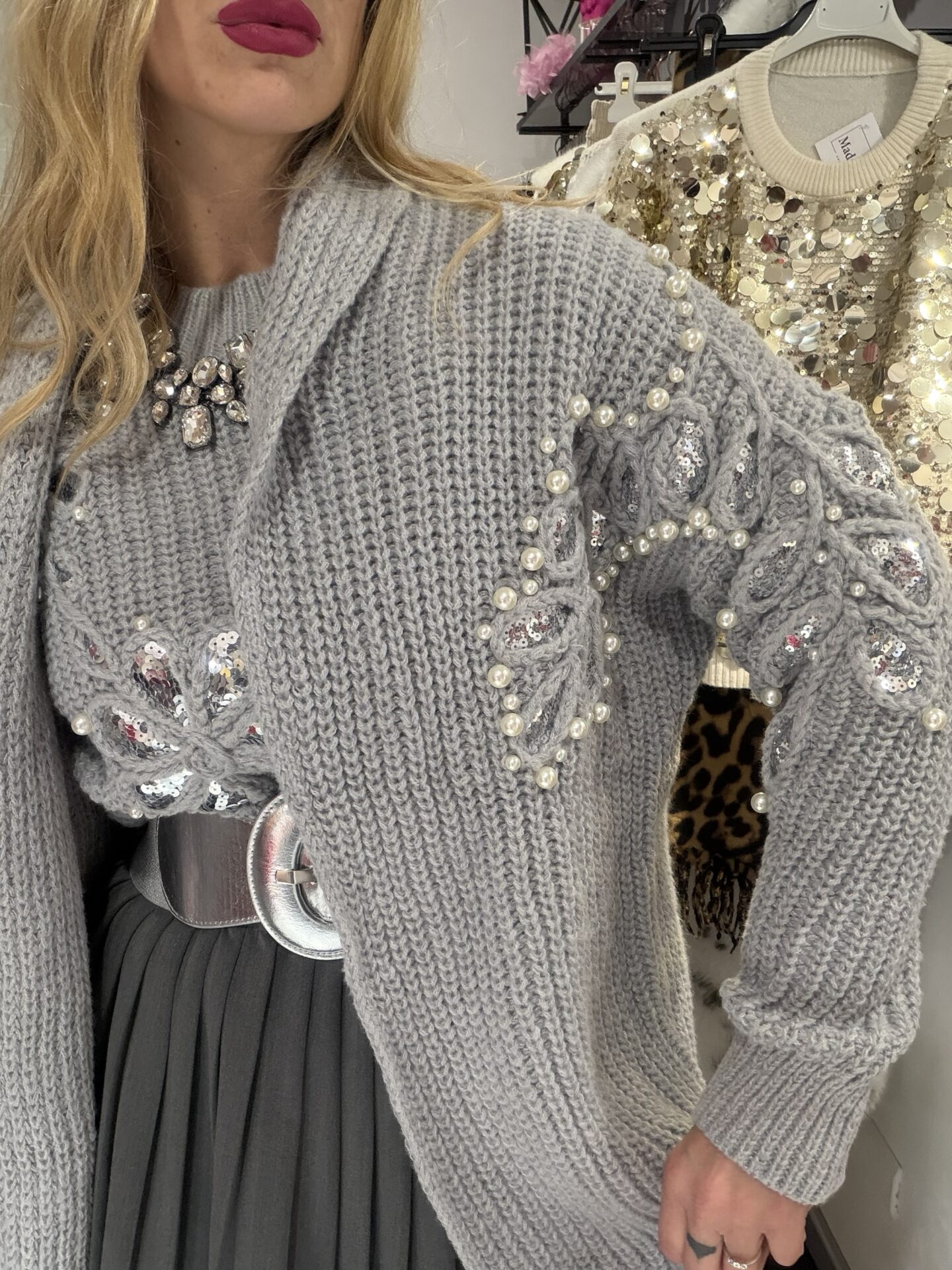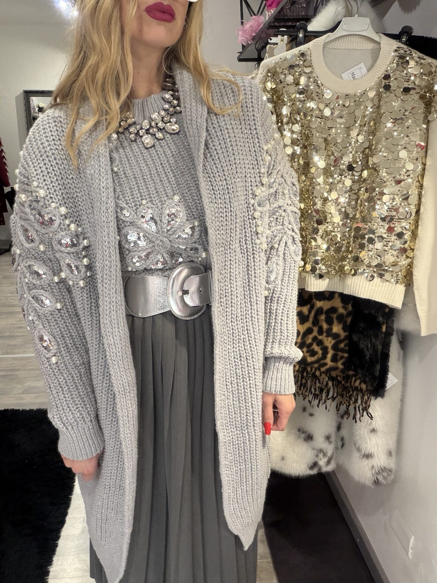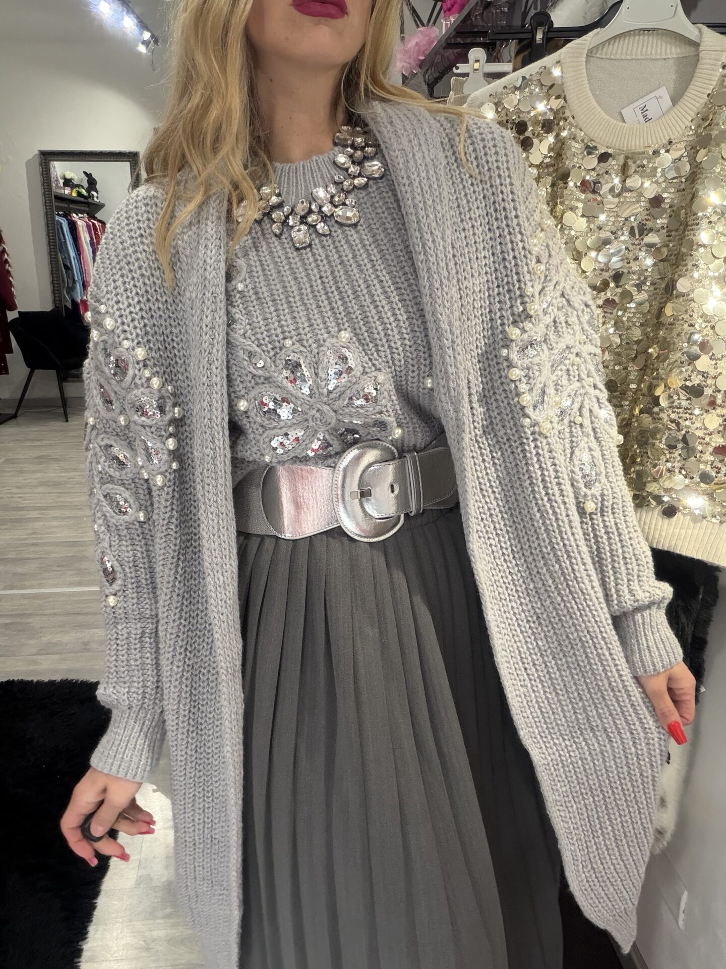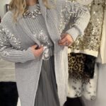Cardigan aperto, taglia unica con applicazione di paillettes e perle 100% poliestere