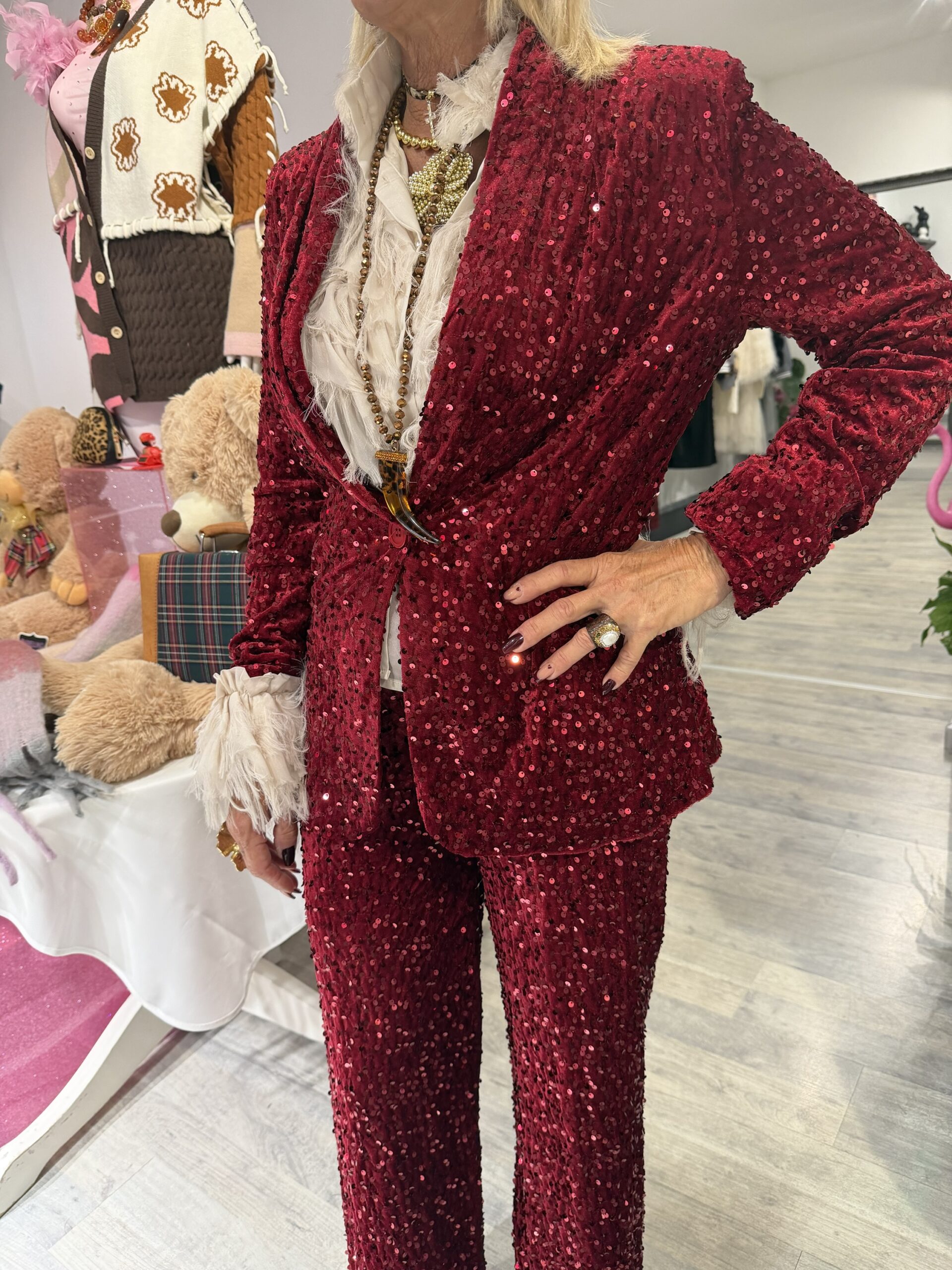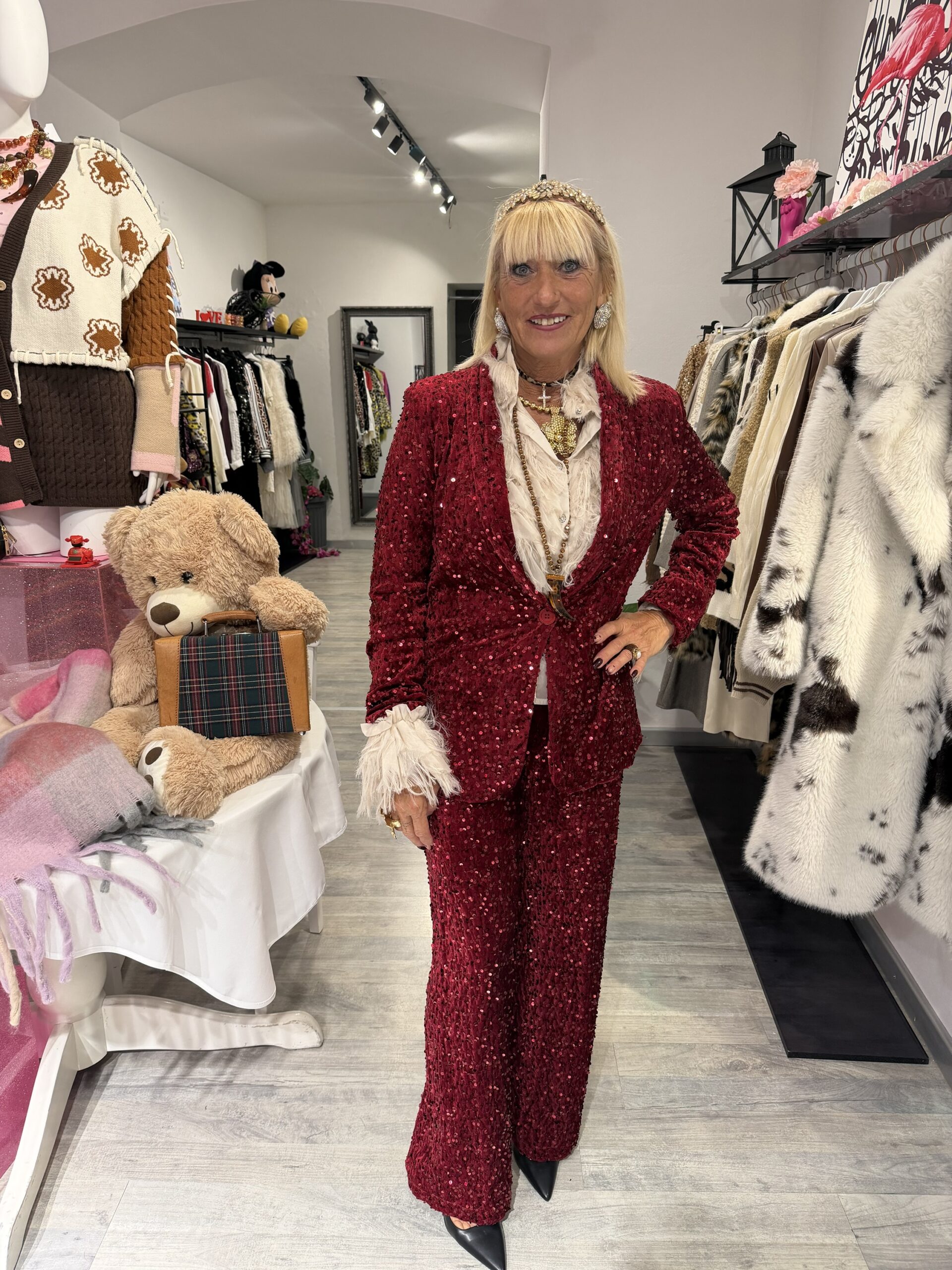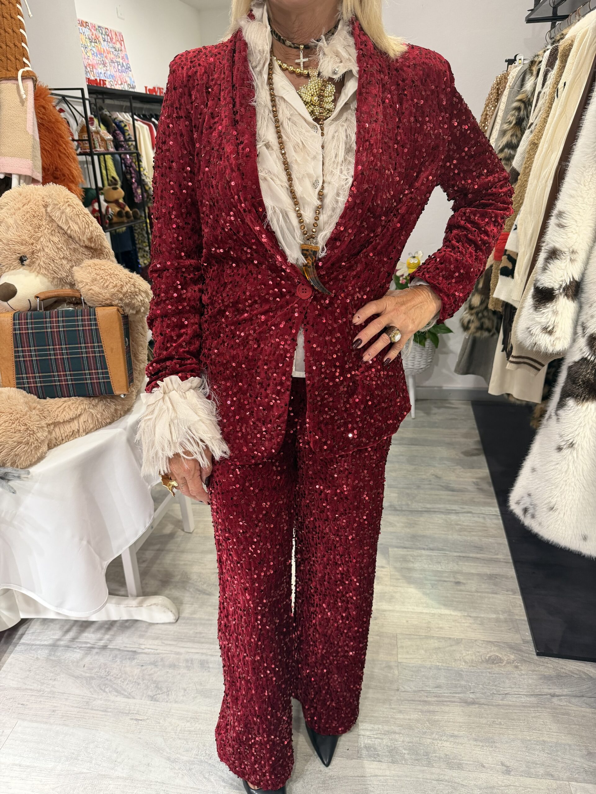 Si può portare anche spezzato, mettendo la giacca con dei jeans o dei leggings con sotto una bella camicia bianca o i pantaloni con una camicia di jeans