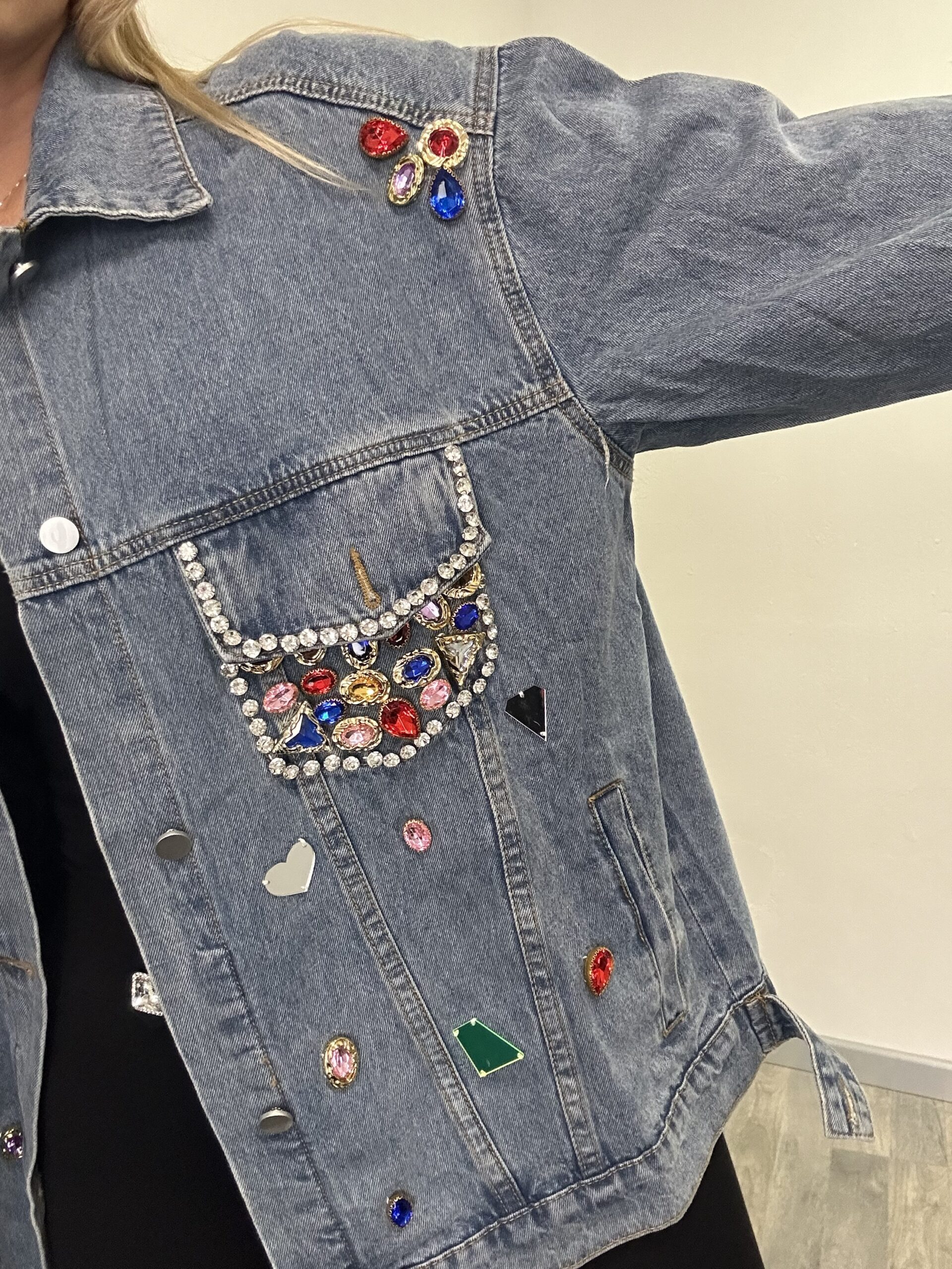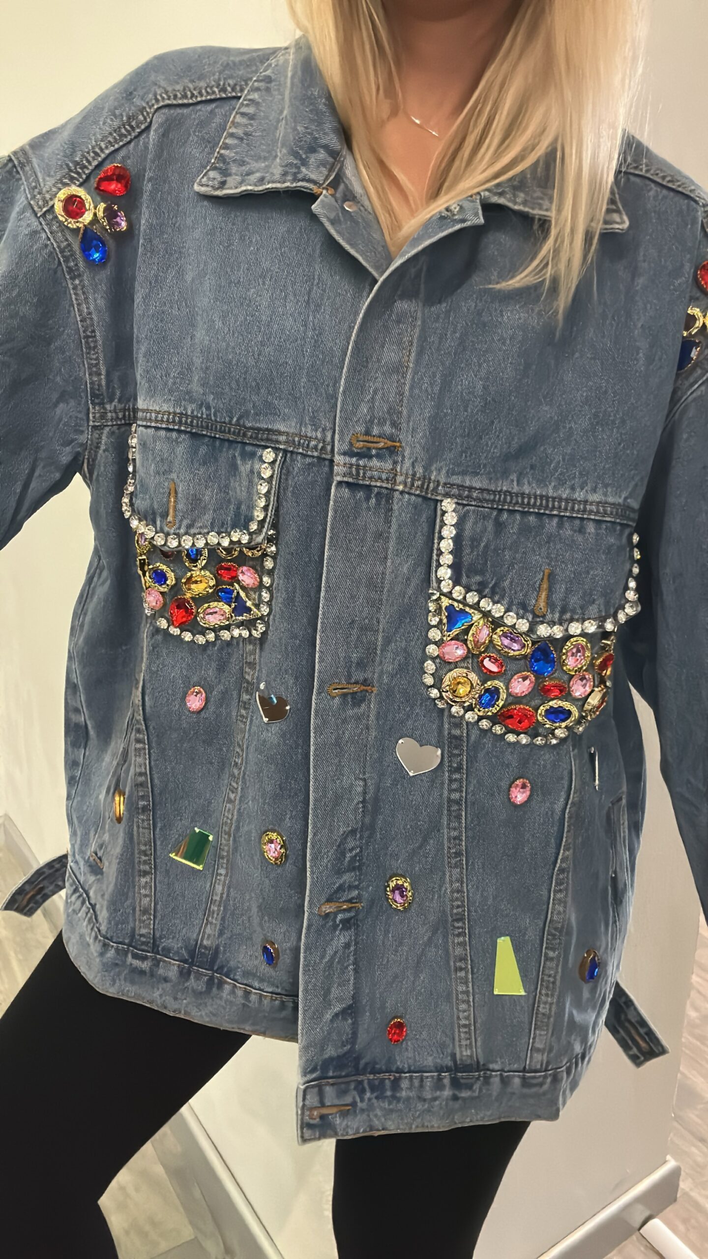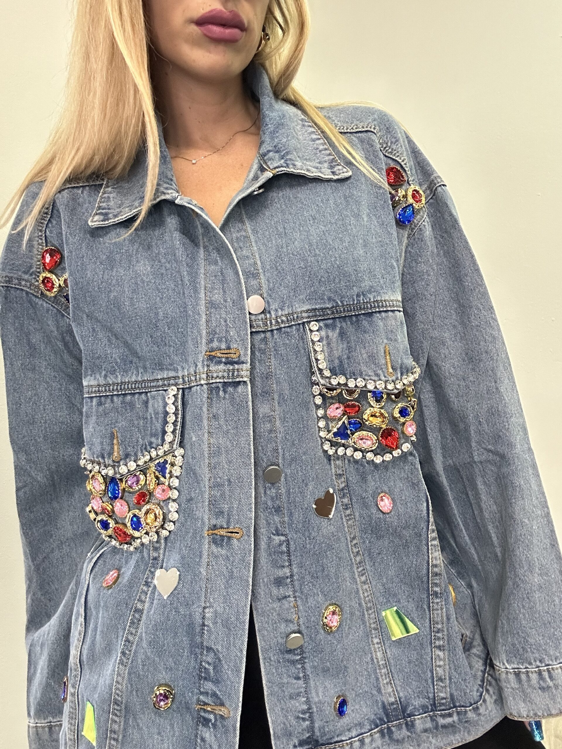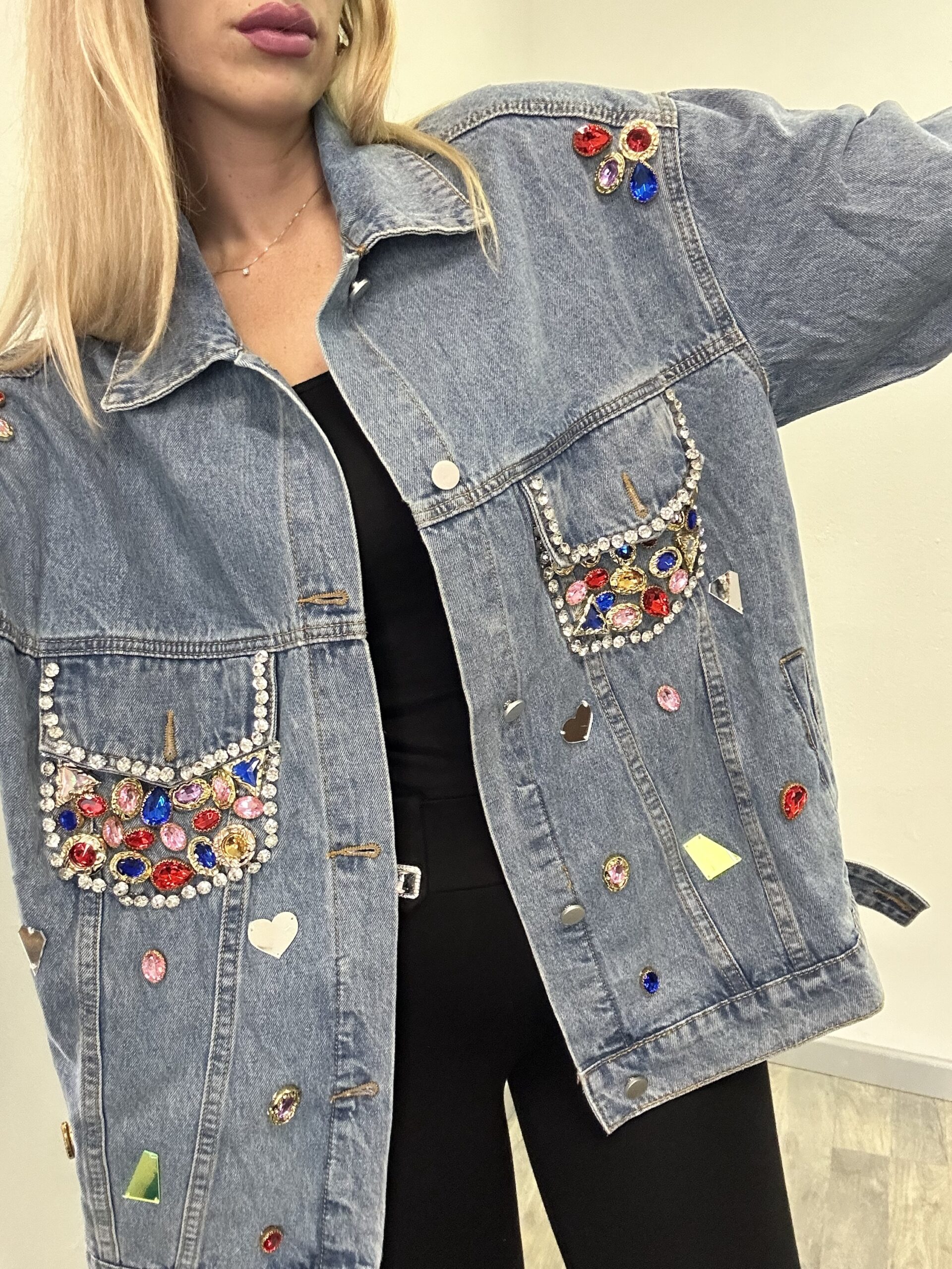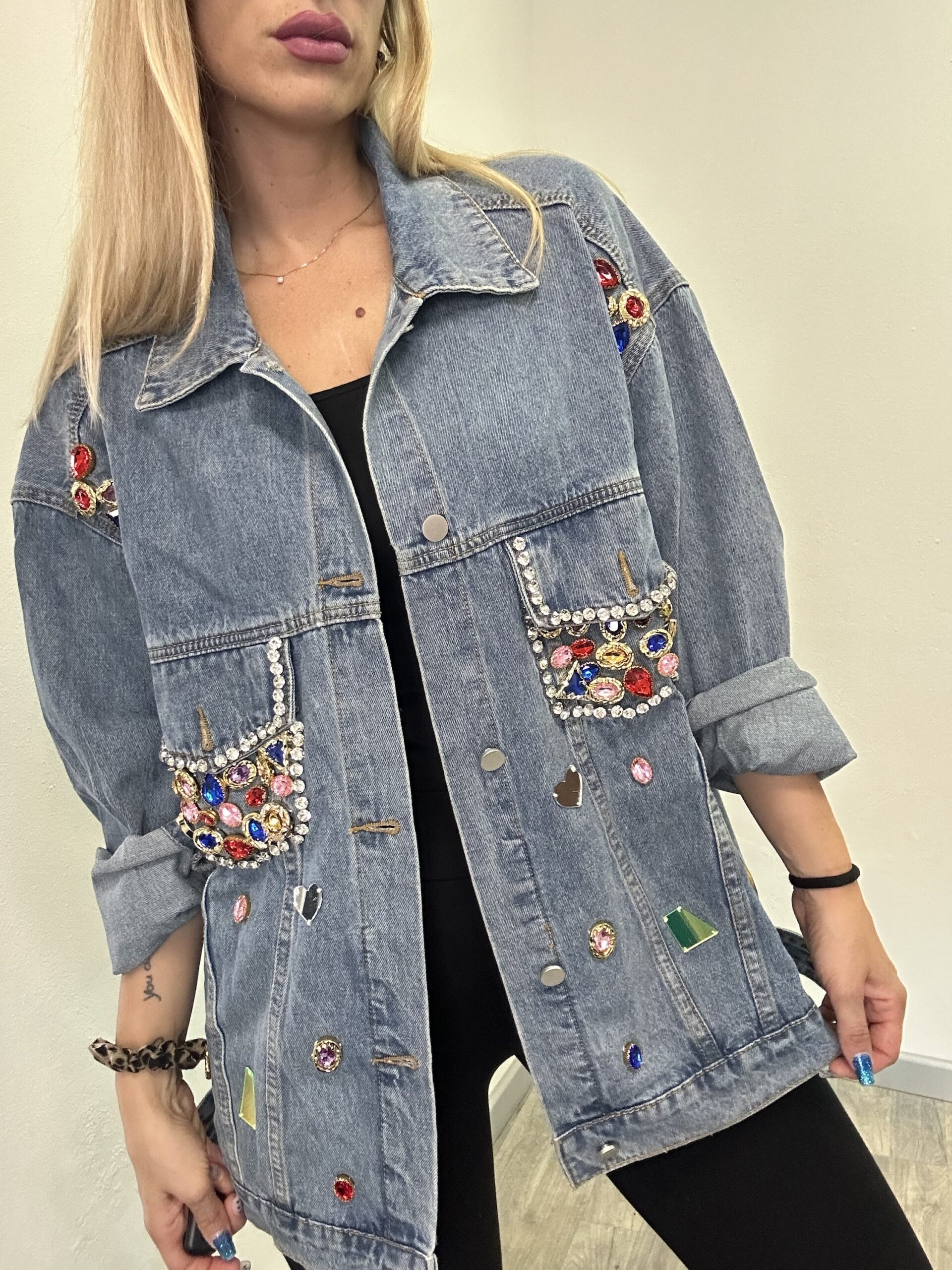 Molto particolare, con tutti i taschini con applicazione di pietre colorate e anche intorno alla camicia varie applicazioni