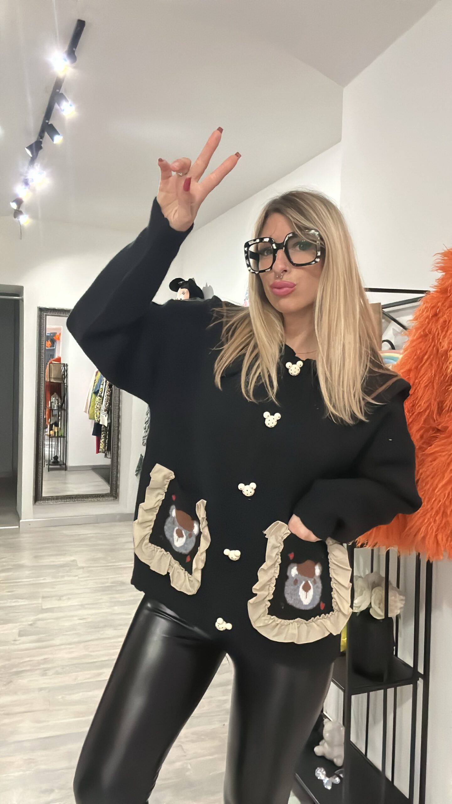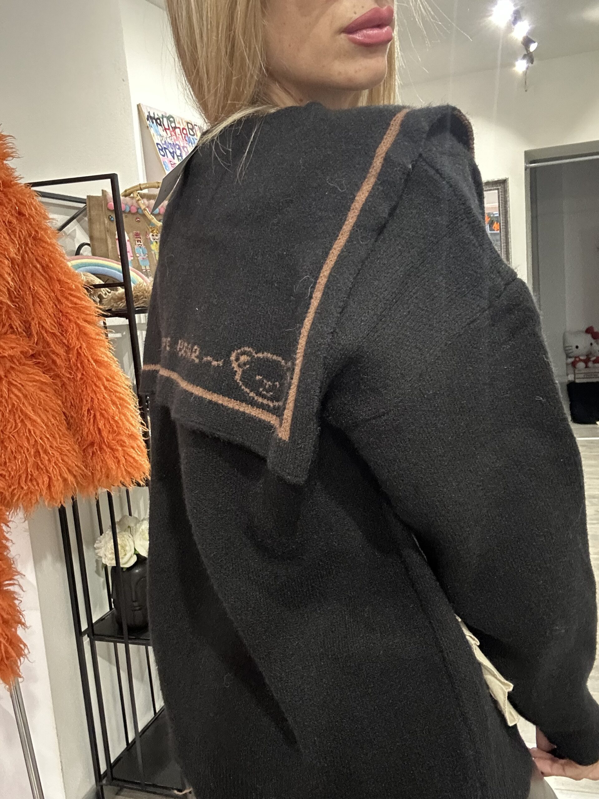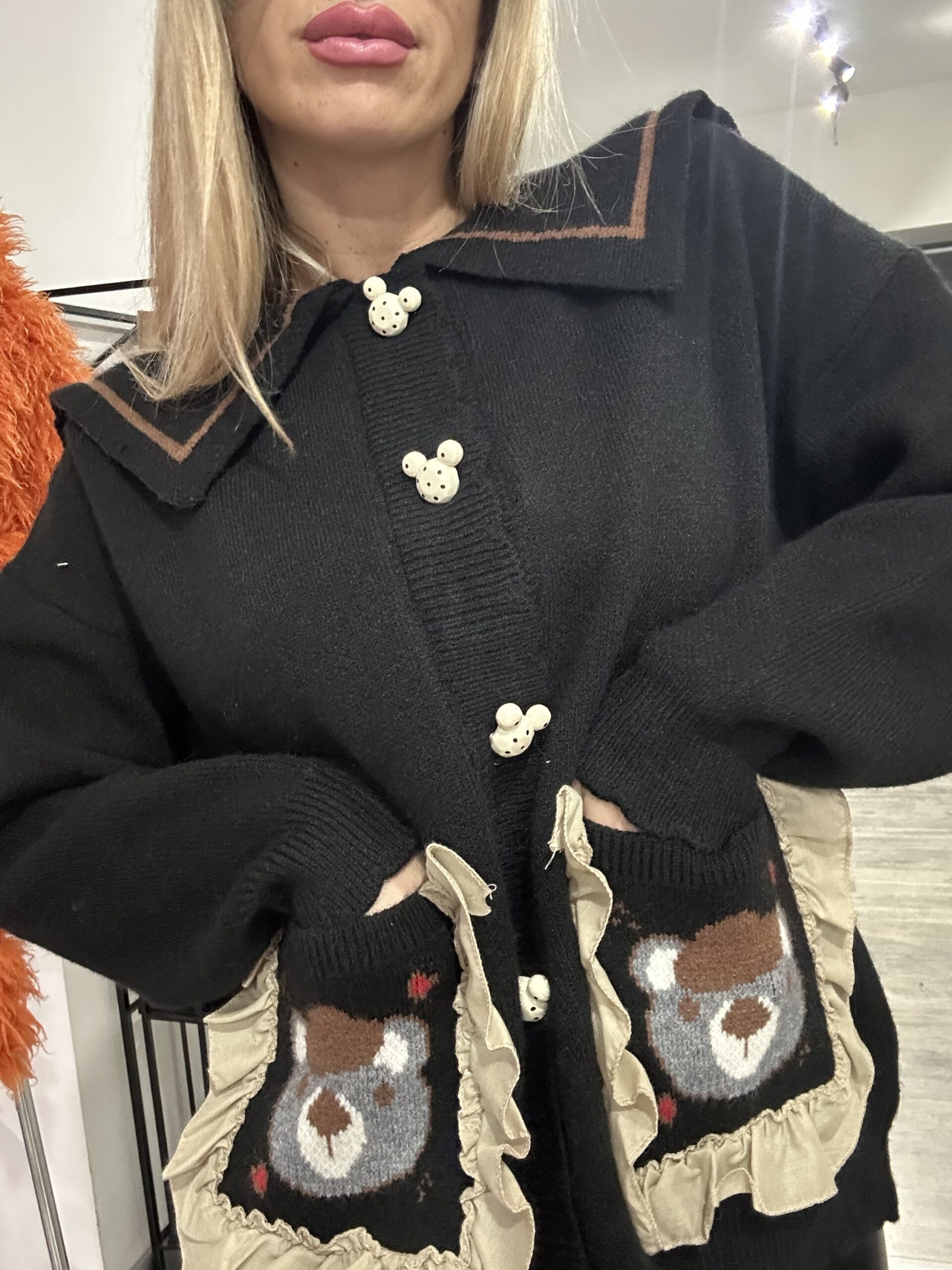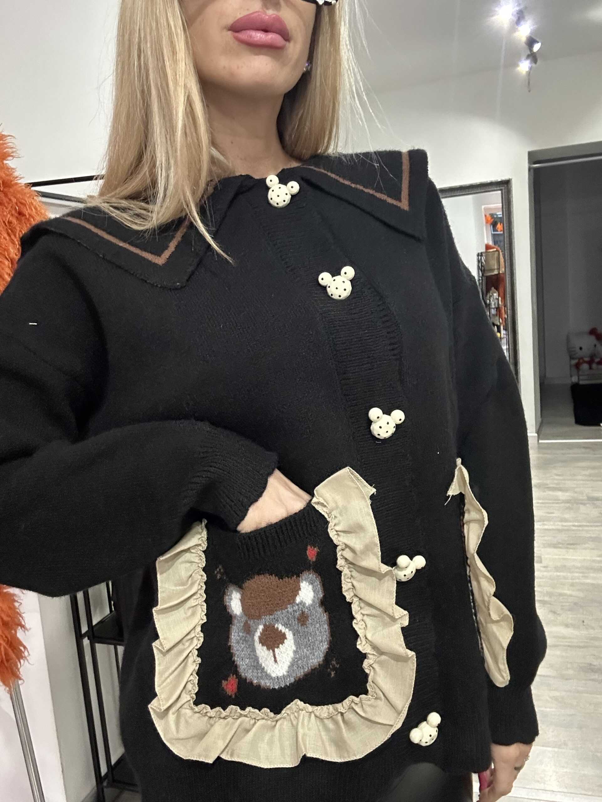 Con dettaglio del bottone a forma di orsetto ,